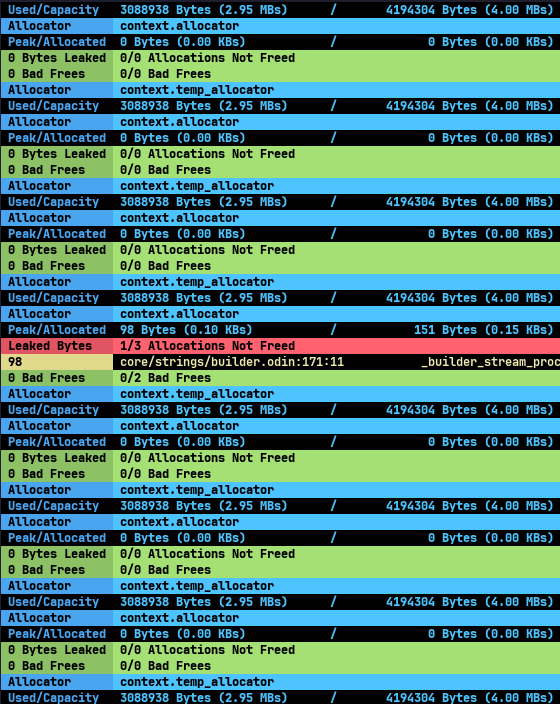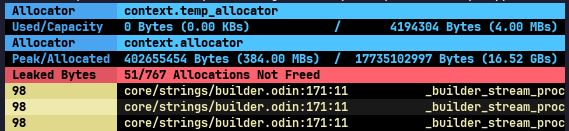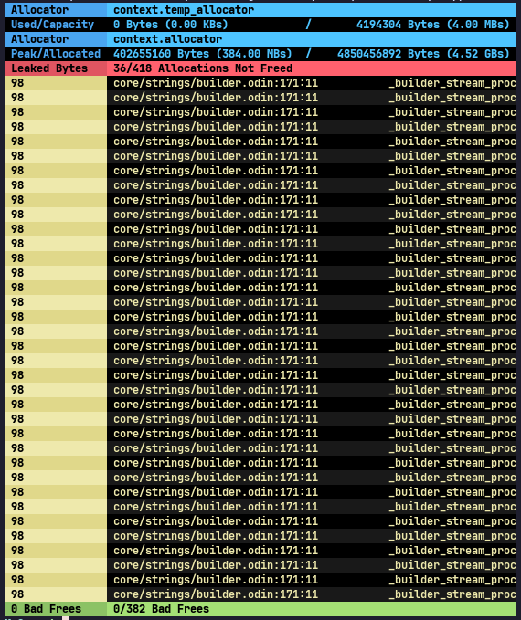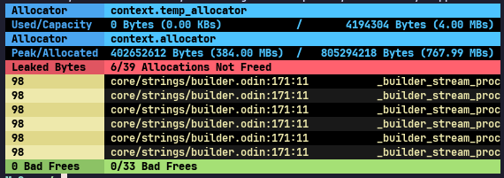 And here’s after I clear the text: (I’m messing up the string builder or cstring conversion, which results in memory not being free, still investigating.)